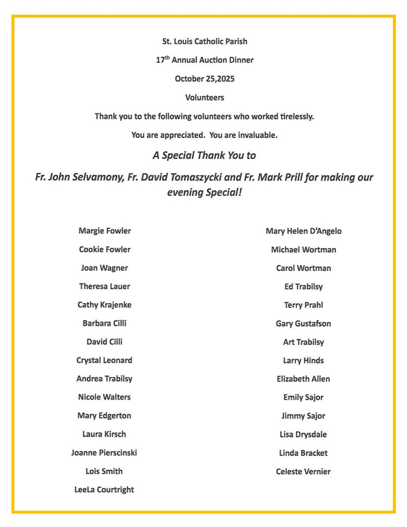 All volunteers must have a current Background Check form on file at St. Louis (within the past 12 months) AND have taken a Protecting God's Children class or re-certification (within the past 36 months). Please contact the Parish Office if you have any questions at 586.468.8734 x-100.
