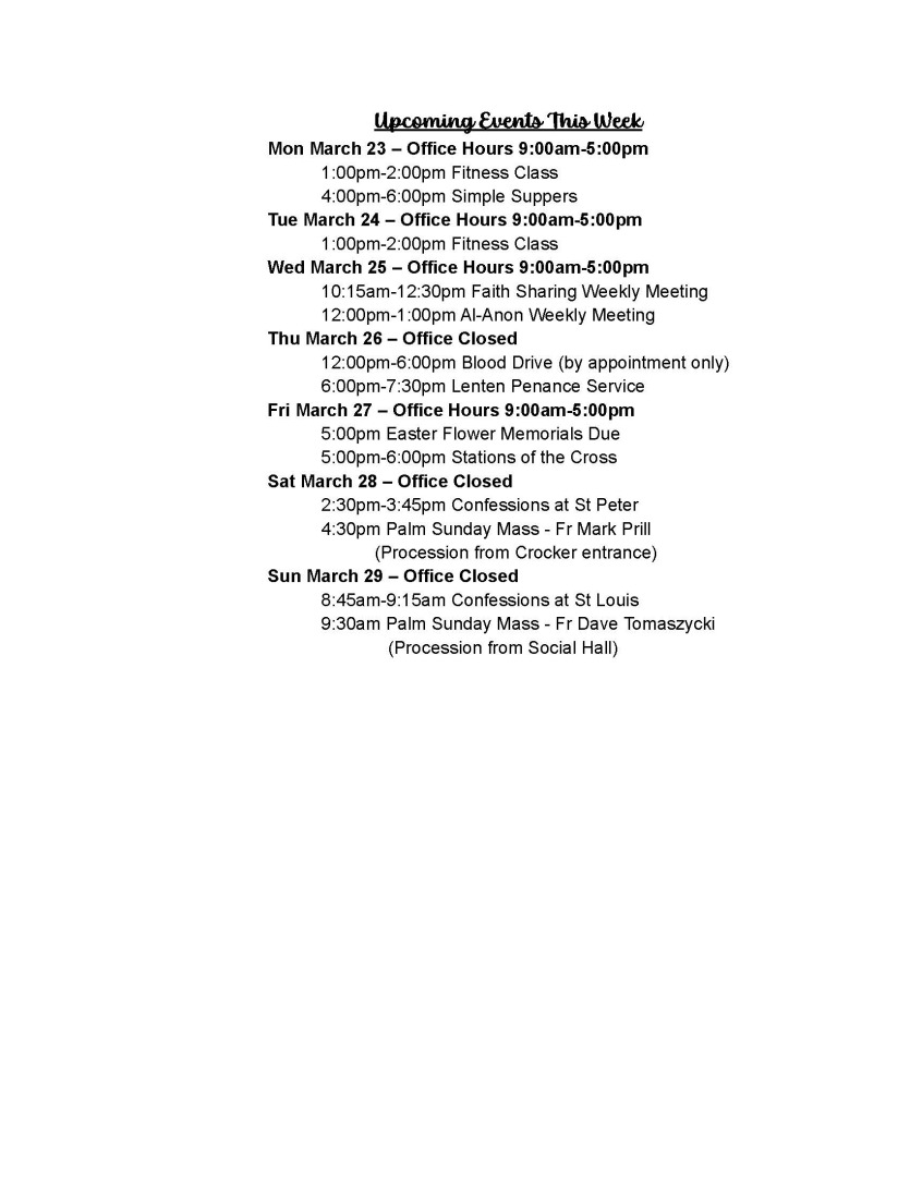 Palm Sunday Weekend - No Rosary before Mass