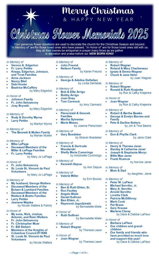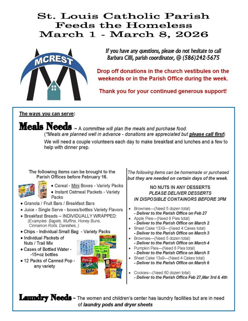 All volunteers must have a current Background Check form on file at St. Louis (within the past 12 months) AND have taken a Protecting God's Children class or re-certification (within the past 36 months). Please contact the Parish Office if you have any questions at 586.468.8734 x-100.