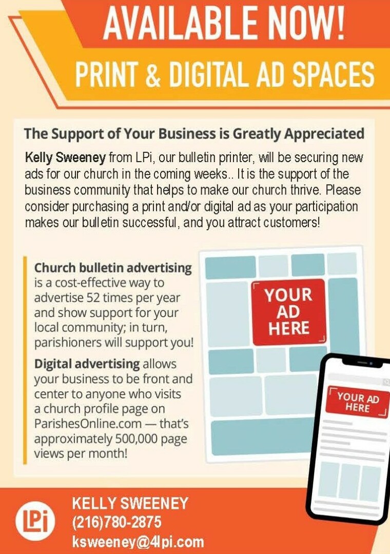 Visit the Parish Office lobby or walk-up window / dropbox.