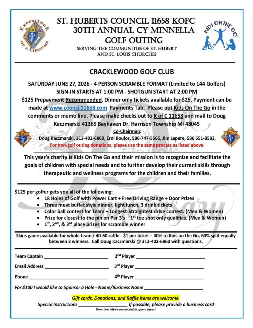 Events Sponsored by Knights of Columbus